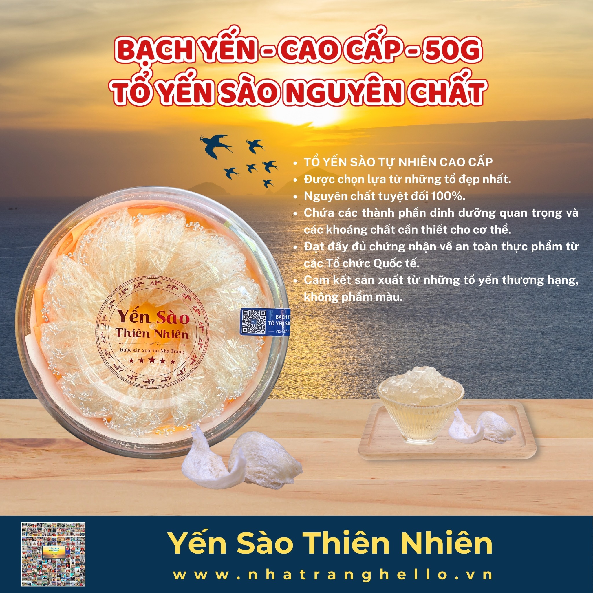 - Chúng tôi cam kết: Hỗ trợ tư vấn và giải đáp các câu hỏi liên quan đến sản phẩm yến sào liên tục 24/7.